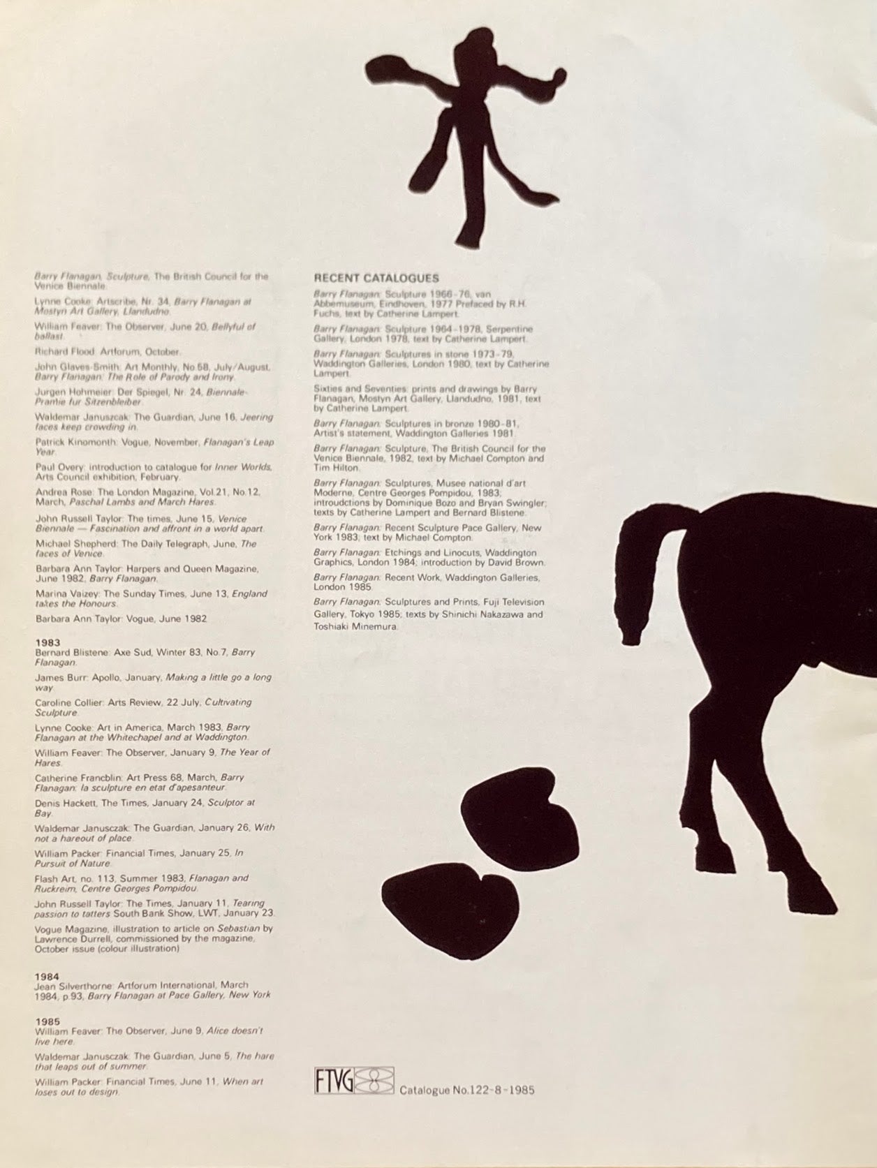 イギリスの彫刻家、Barry Flanagan 展覧会カタログ