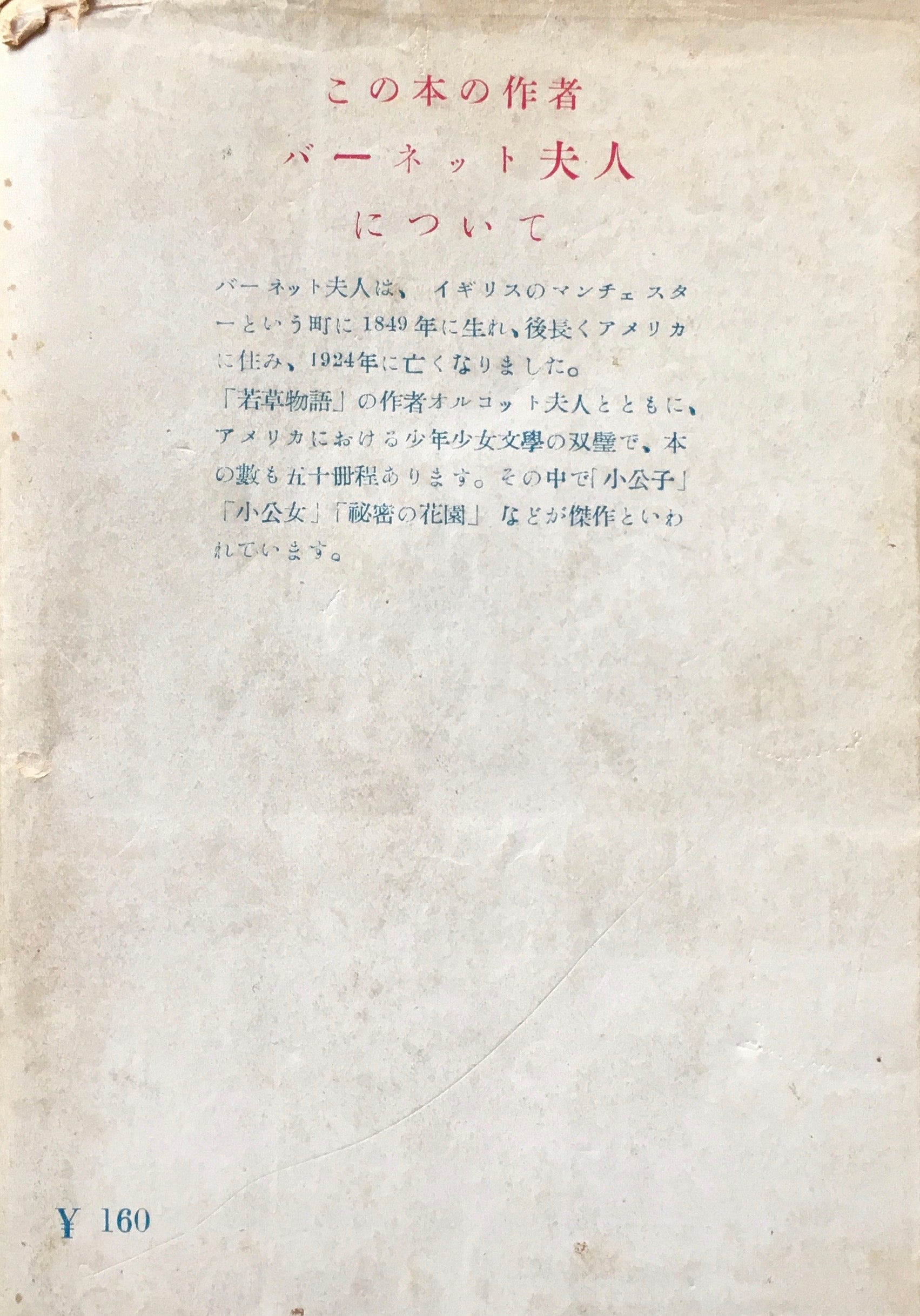 小公女 バーネット 伊東整 訳 世界文学選書130