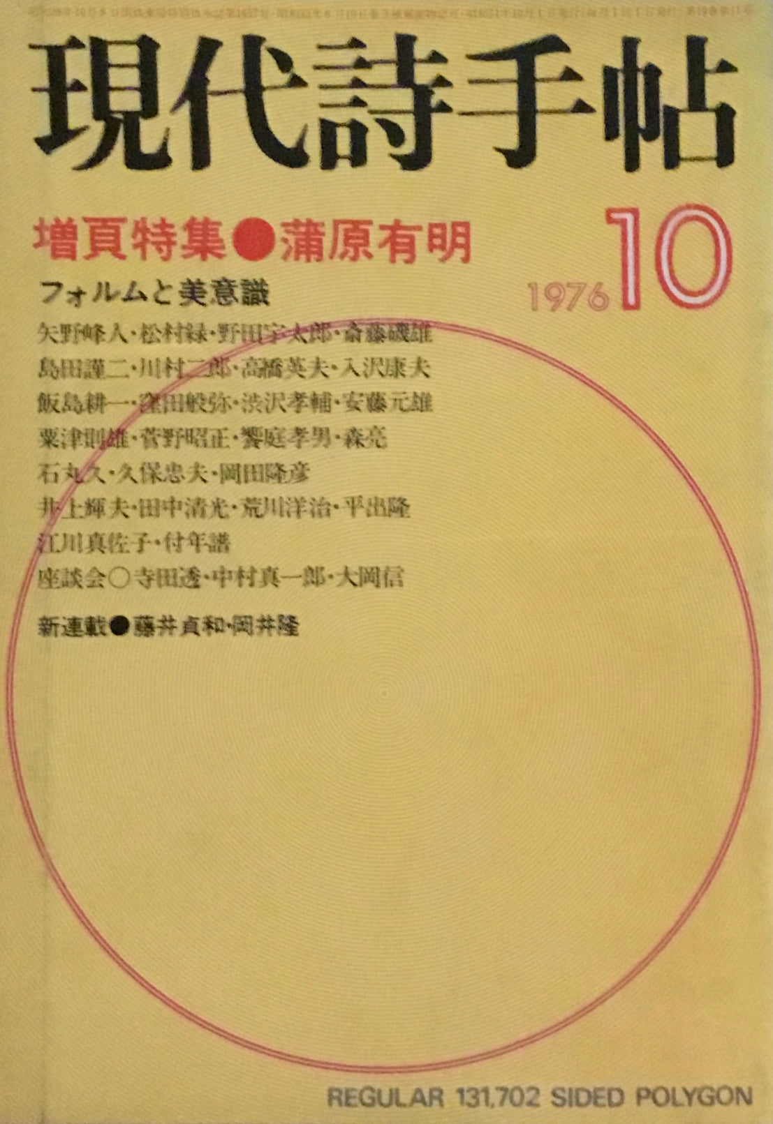 現代詩手帖 1976年10月号 増頁特集 浦原有明 フォルムと美意識