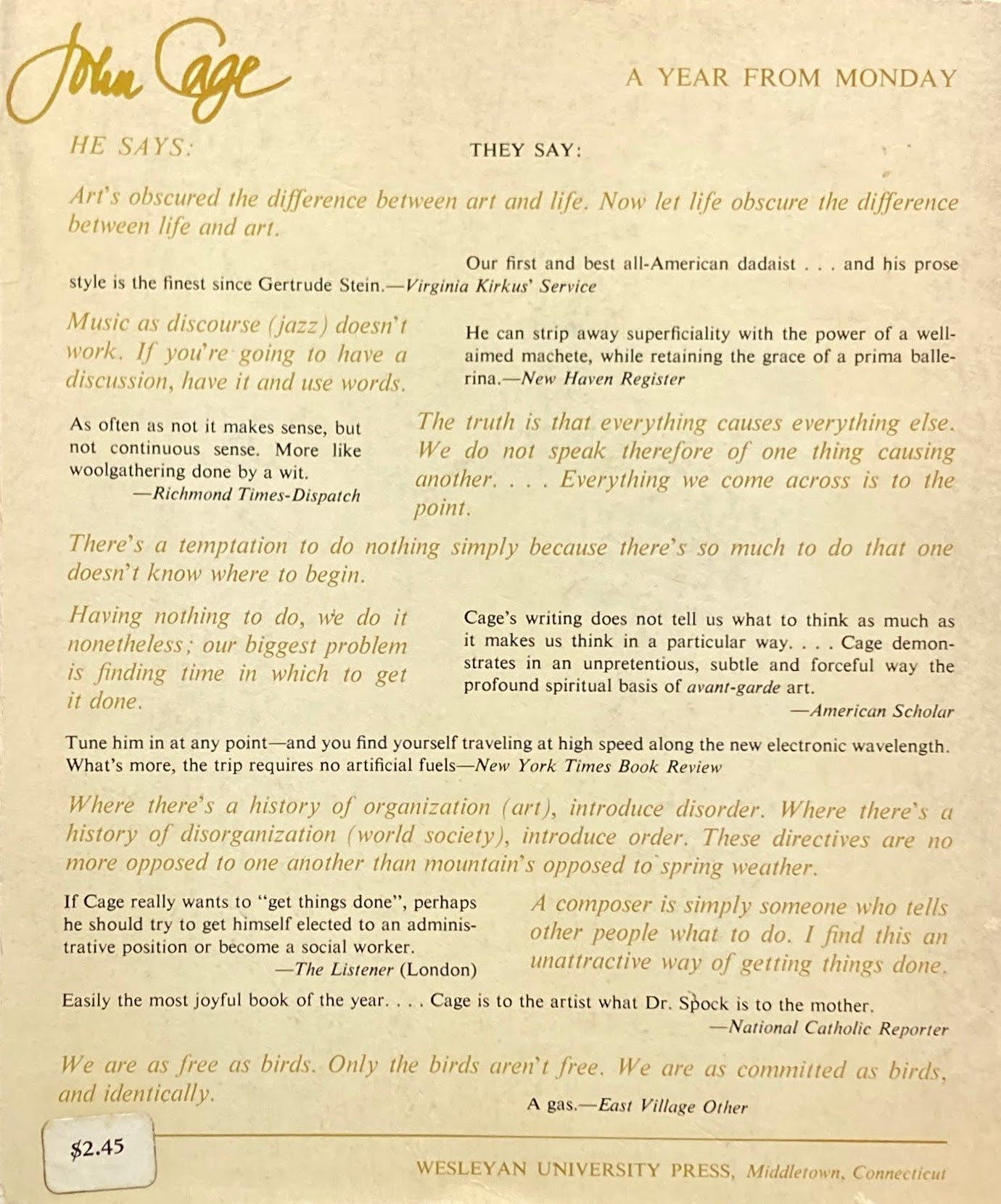A Year From Monday New Lectures and Writings by Jhon Cage ジョン・ケージ