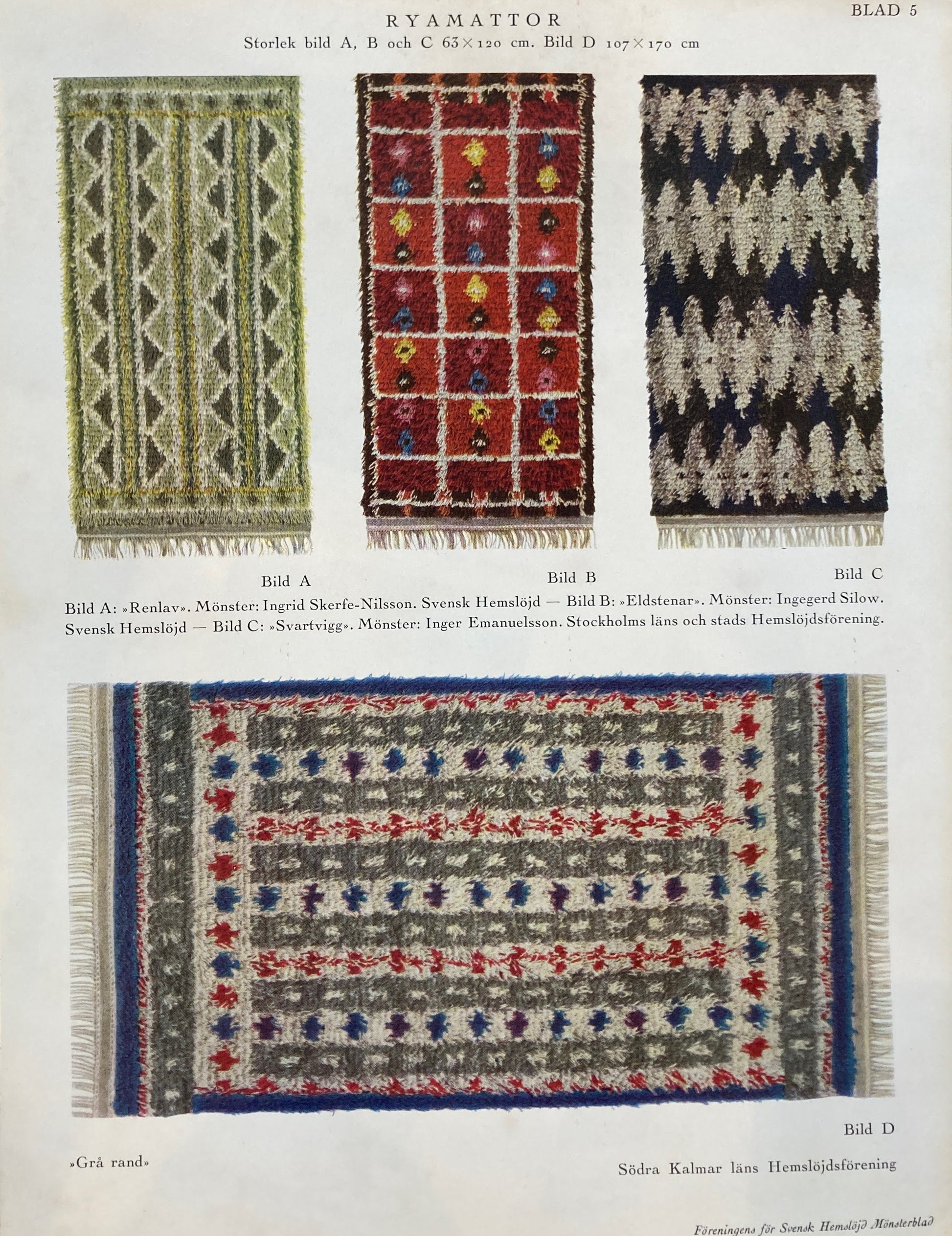 Monsterblad Utgivna av Foreningen for svensk hemslojd Ryamattor Vavda Eller Knutna Pa Bottnar KARTONG10 <ラグ> スウェーデン手工芸協会