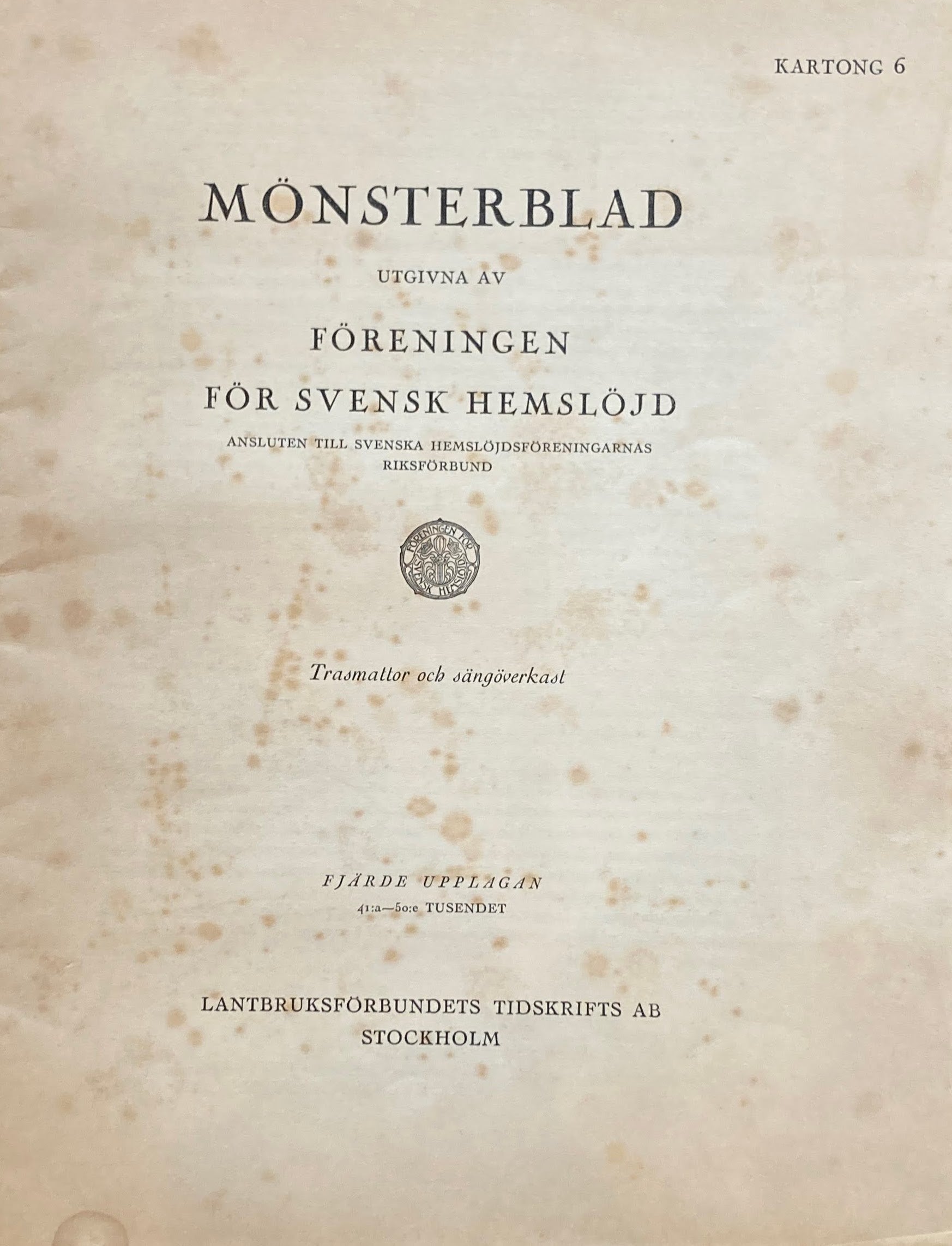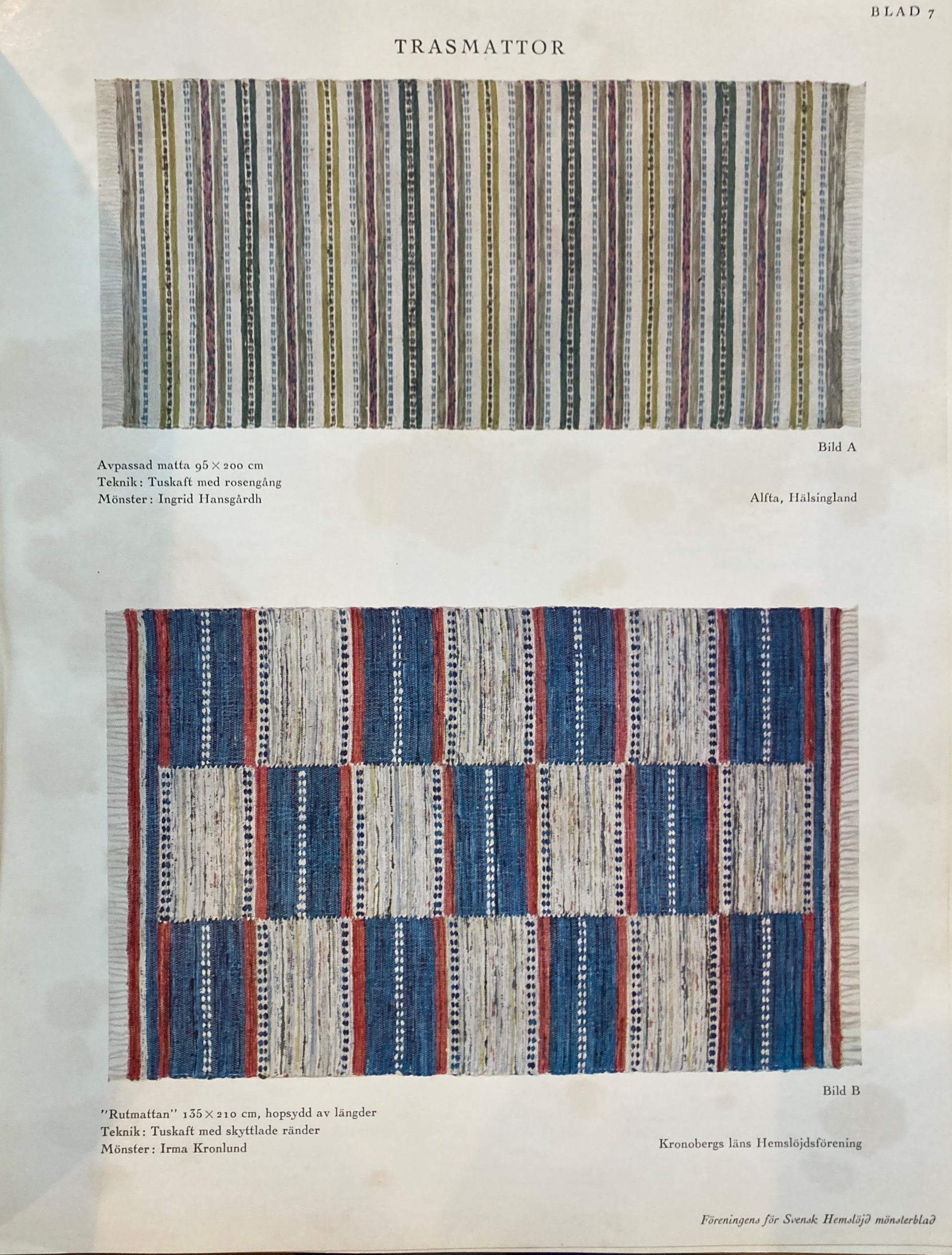Monsterblad Utgivna av Foreningen for svensk hemslojd Trasmattor och Sangoverkast KARTONG6 <ラグとベッドリネン> スウェーデン手工芸協会